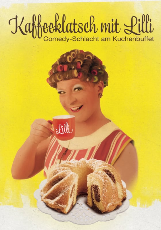 Kaffee, Kuchen & Comedy mit viel Spaß, süßen Kunststückchen & Schlagsahne – Der ultimative Kaffeeklatsch mit Lilli. Eine beschwingte Schlemmer – Comedy, bei der sich alles um die Frau von heute und den Mann von gestern dreht, und wie man als Schnuddellawine Problemzonen einfach überrollt.